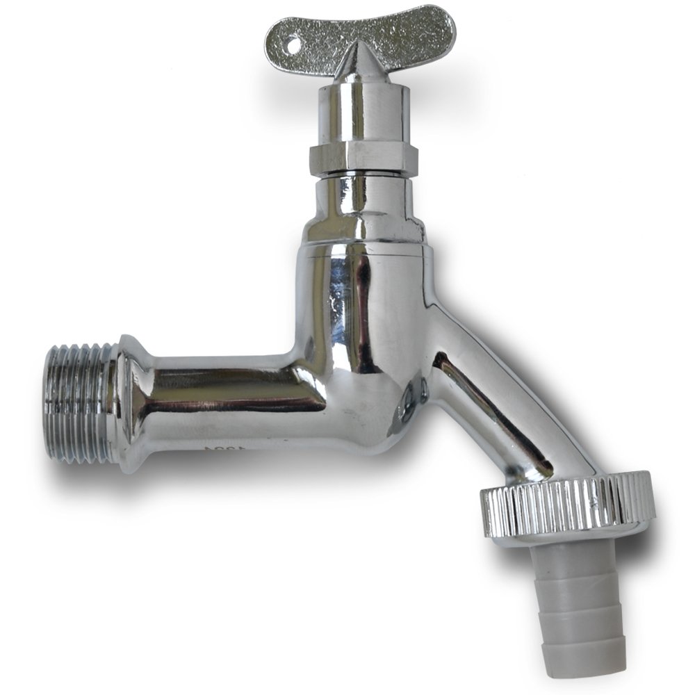 Verchroomde buitenkraan met losse sleutel. Mooi in combinatie met de gevelkolom.