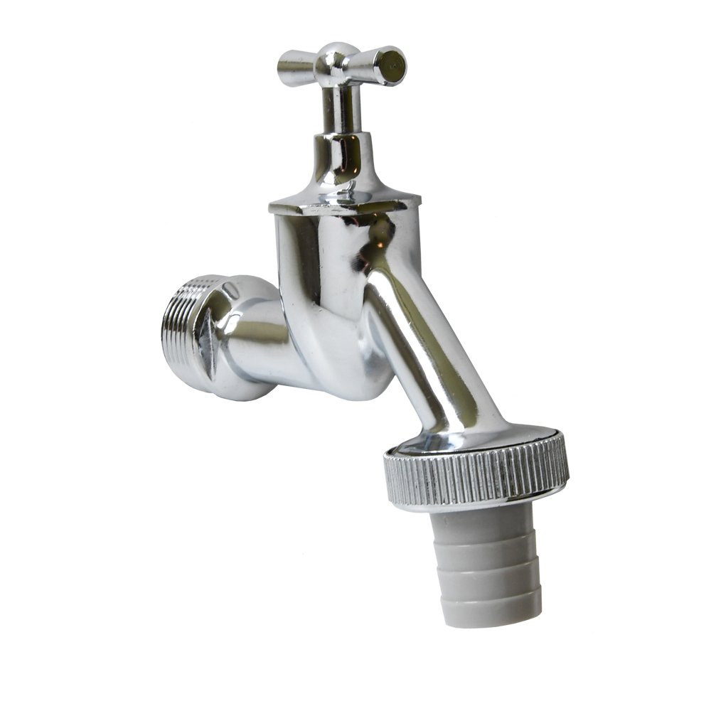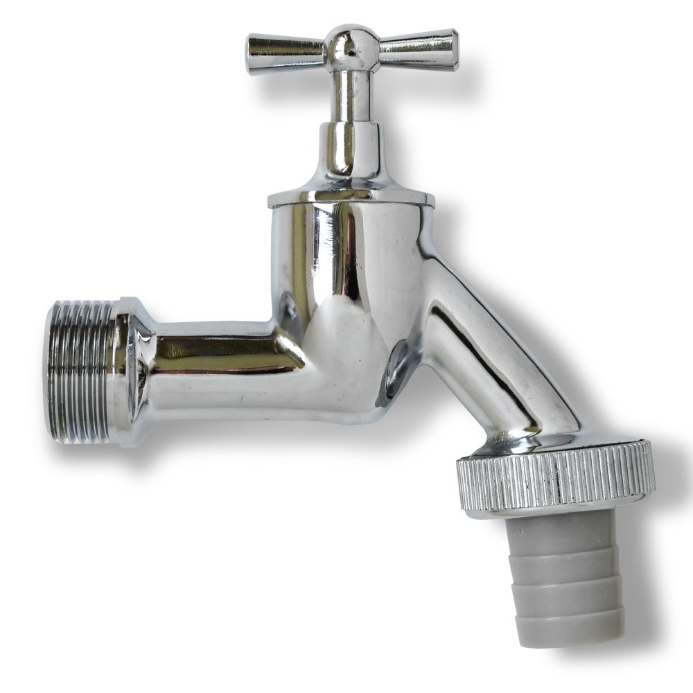 Tapkraan die te gebruiken is als luxe vervanging van een standaard kunststof kraan op alle regentonnen met een 3/4" schroefopening.
